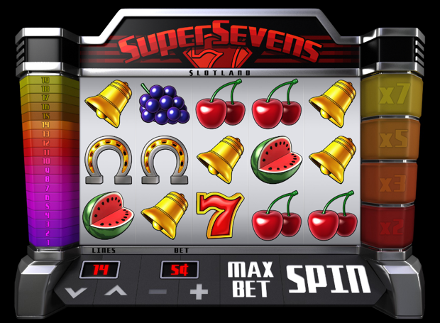 Super Sevens Video Slot is a fruit slot machine with 5 reels and 19 paylines. Free Spins with an increasing win multiplier will boost your cash! After every winning spin you earn one Free Spin with all wins doubled! If your winning streak continues, your win multiplier can increase up to 7X. The Free Spins last as long as you are winning!